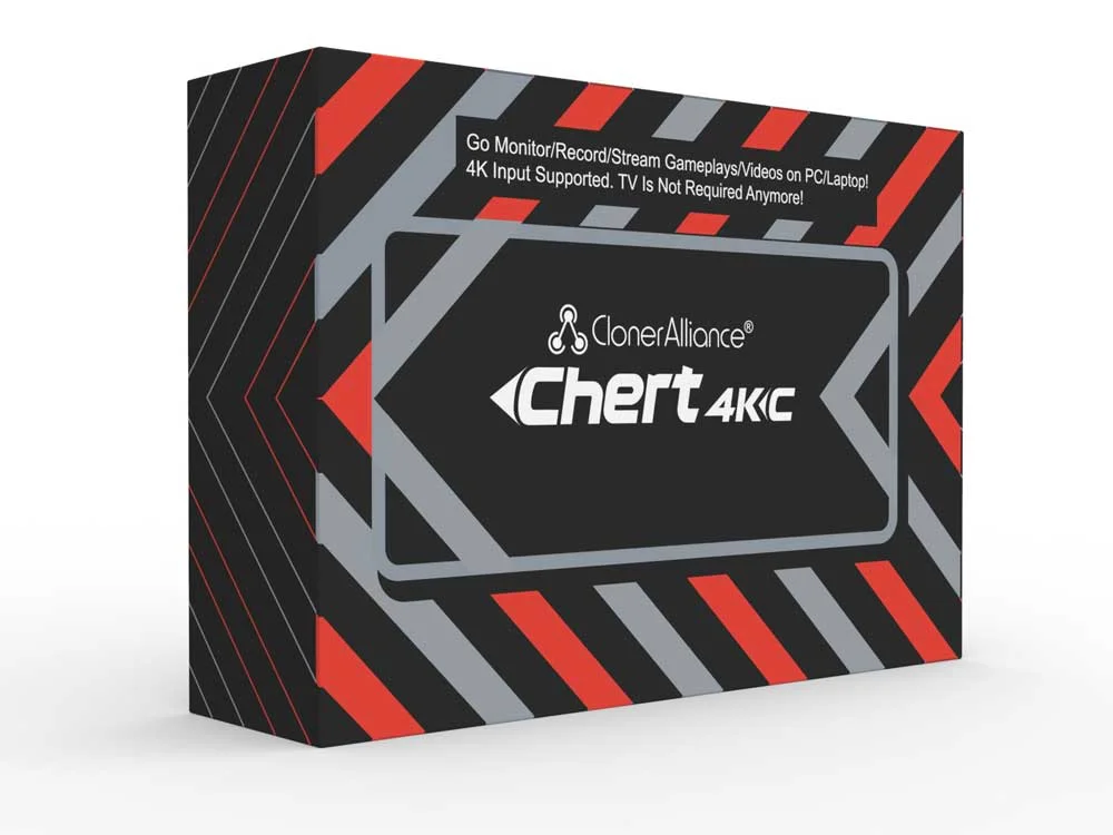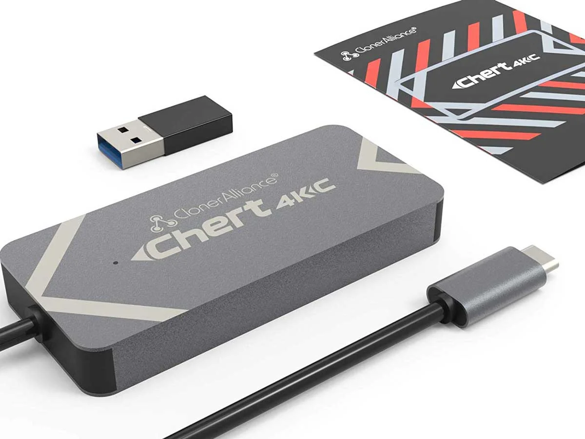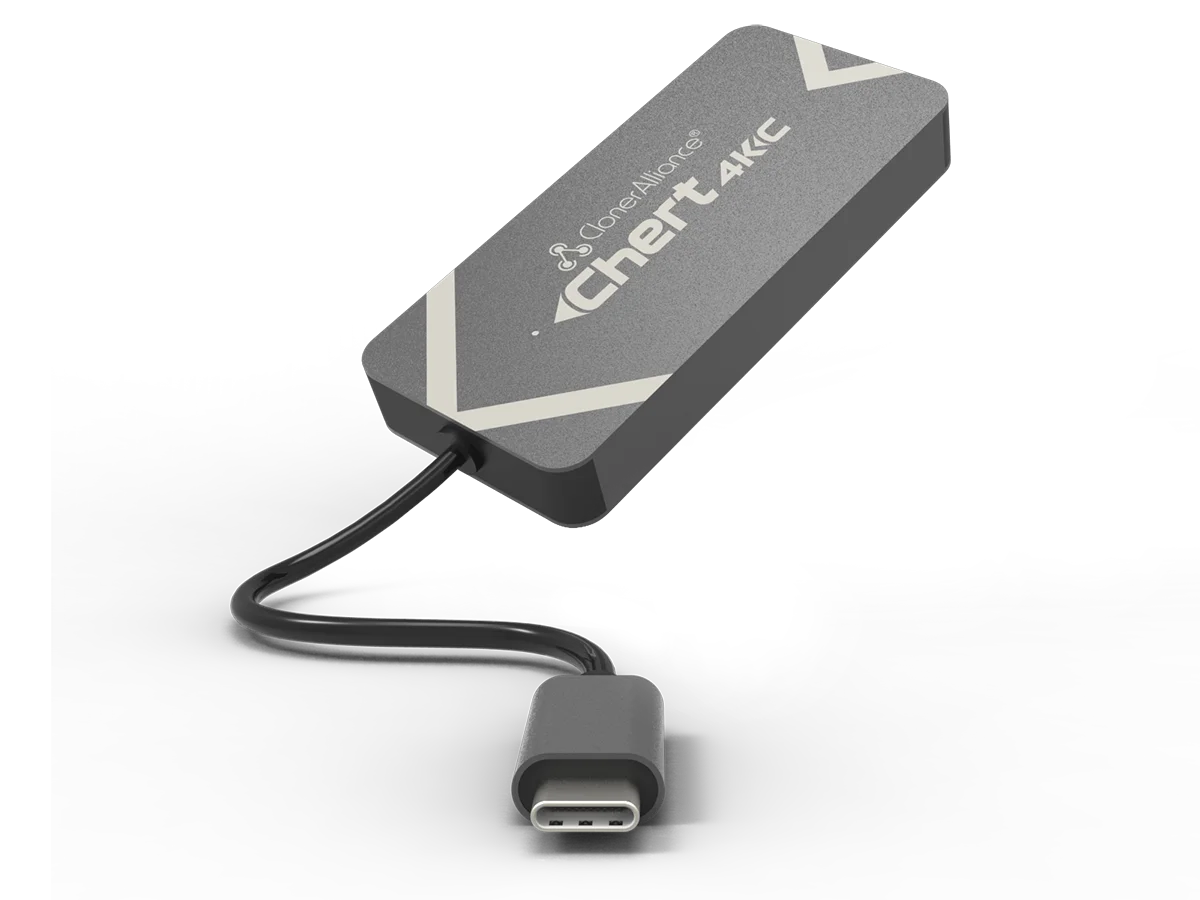 ClonerAlliance Chert 4KC is a super portable UVC HDMI to USB 3.0 video capture device. It supports 4K@30fps input. No driver is needed, just plug and play. With universal and high performance USB Type-C Plug and Ultra Low Latency technology, you can easily record and broadcast 1080p@60fps HDMI videos from video players, set-top boxes, webcams, DSLRs, camcorders and game consoles to Mac, Windows, Linux or Android.