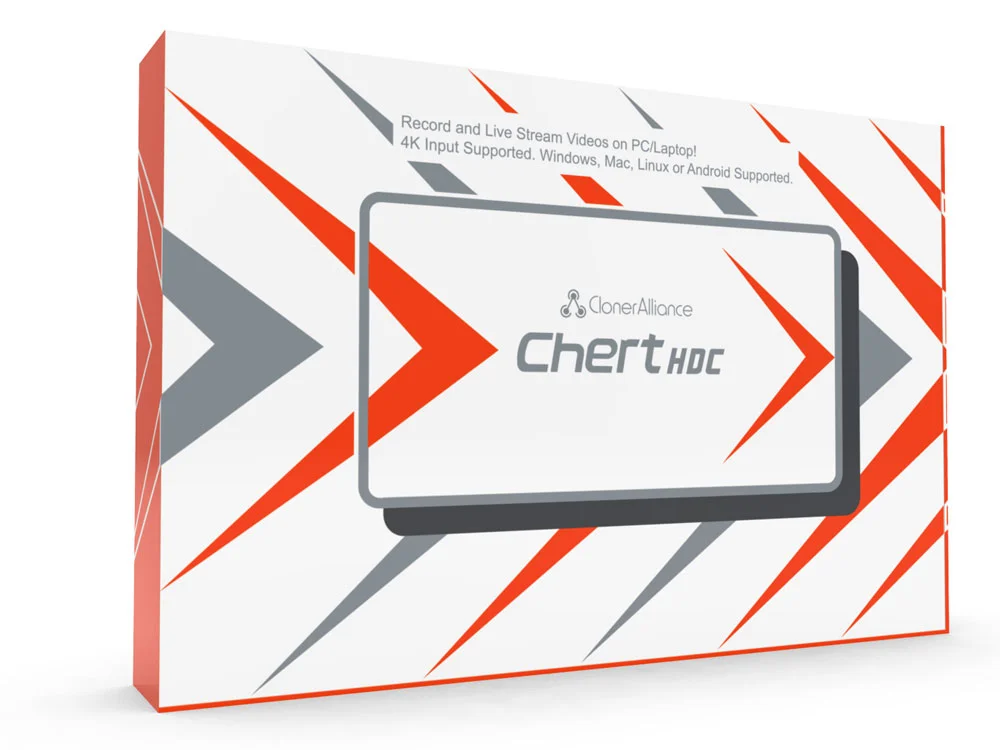 ClonerAlliance Chert HDC is a super portable UVC HDMI to USB 2.0 video capture device. It supports 3840 x 2160@30fps input. No driver is needed, just plug and play. With universal and high performance USB Type-C plug and Ultra Low Latency technology, you can easily record and live broadcast HDMI videos at 1080p@30fps from video players, set-top boxes, webcams, DSLRs, camcorders and game consoles to Mac, Windows, Linux or Android. You can hook up multiple ClonerAlliance Chert HDC units and input multiple video sources to your laptop to realize PIP live streaming.