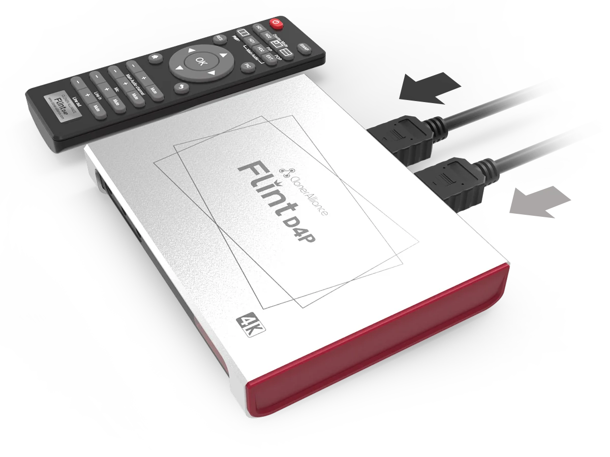 ClonerAlliance Flint D4P is a picture-in-picture 4K game capture device. It supports 4K@60fps and 2K@144fps game video input. With ClonerAlliance Flint D4P, you can capture dual 4K images with multiple PIP display modes, stream them to Facebook, YouTube, Twitch, ZOOM, Skype, etc and record as 1080p@60fps. Integrated with UVC standard and high performance Type C port, you can easily record and stream HDMI videos from game consoles, set-top boxes, webcams, DSLRs to Mac, Windows, Linux or Android. Thanks to the Line In and external audio input integration with ClonerAlliance Flint D4P, you can add your own voice into the gameplay in time, mixing line audio and mic audio to gaming smoothly, as well as remove the original audio from a video and add your own audio.