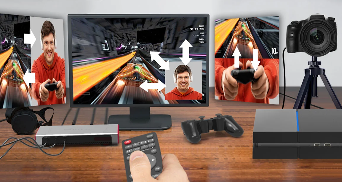 Equipped with dual 4K HDMI input ports, it enables you to overlay both images of 4K@60fps game video and 4K@30fps webcam/DSLR. No any software required. Capture/stream 4K gameplay and 4K silhouette simultaneously as 1080p@60fps.