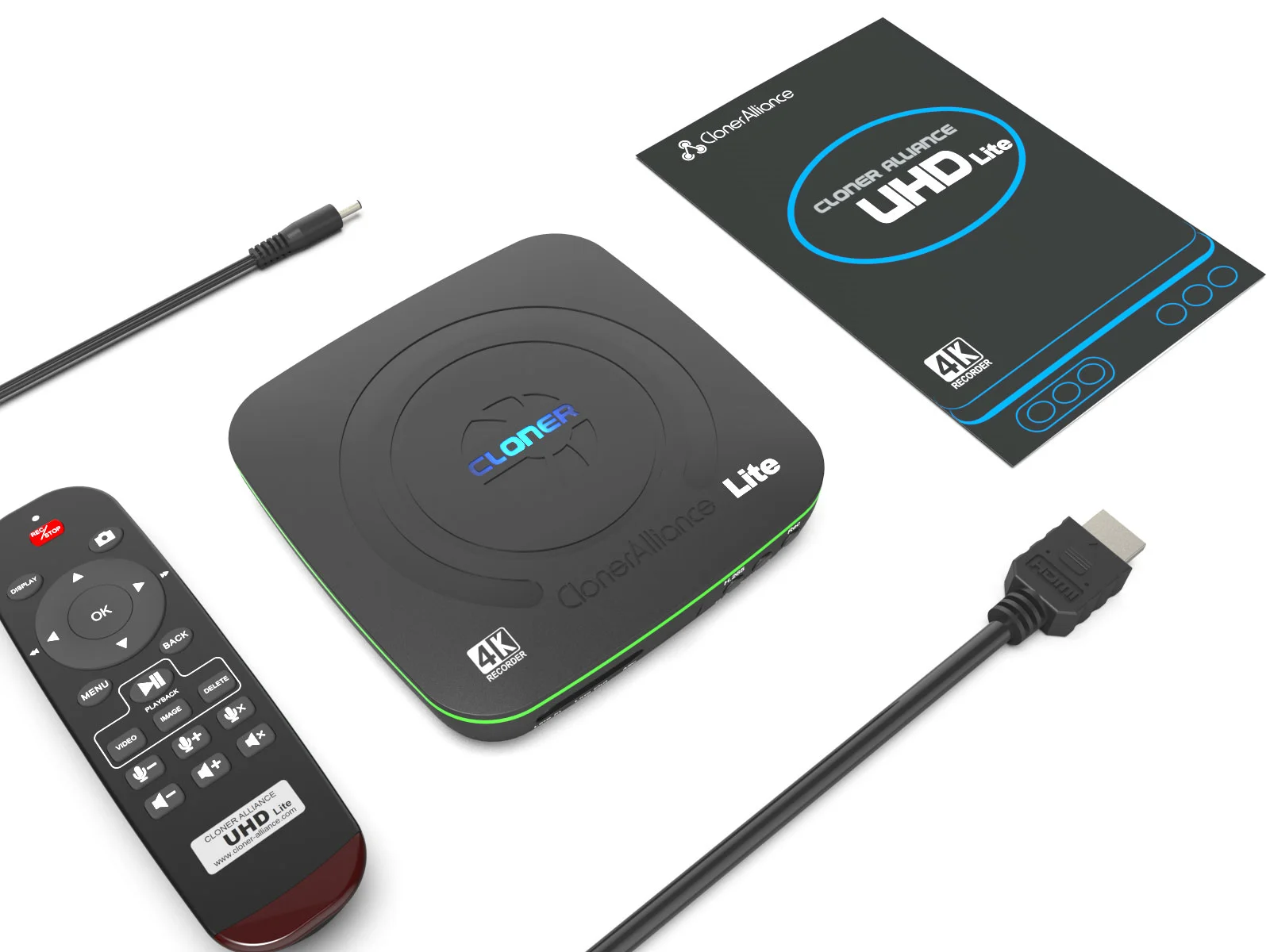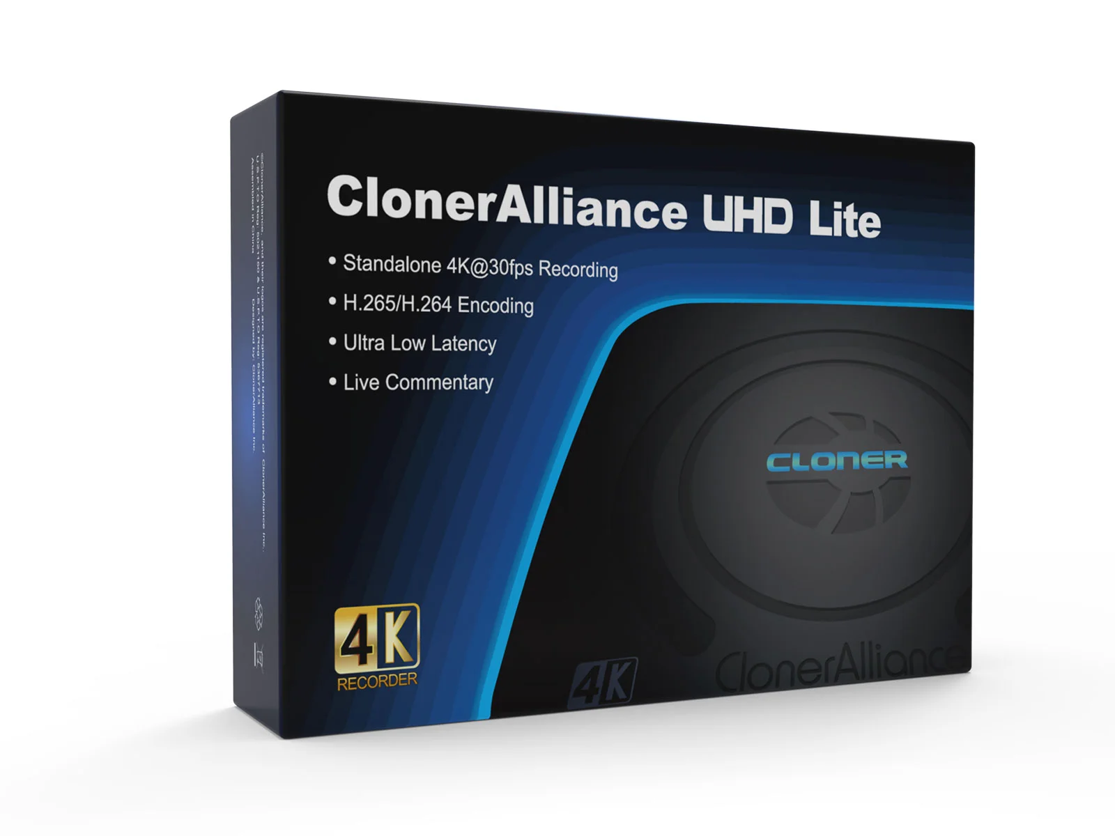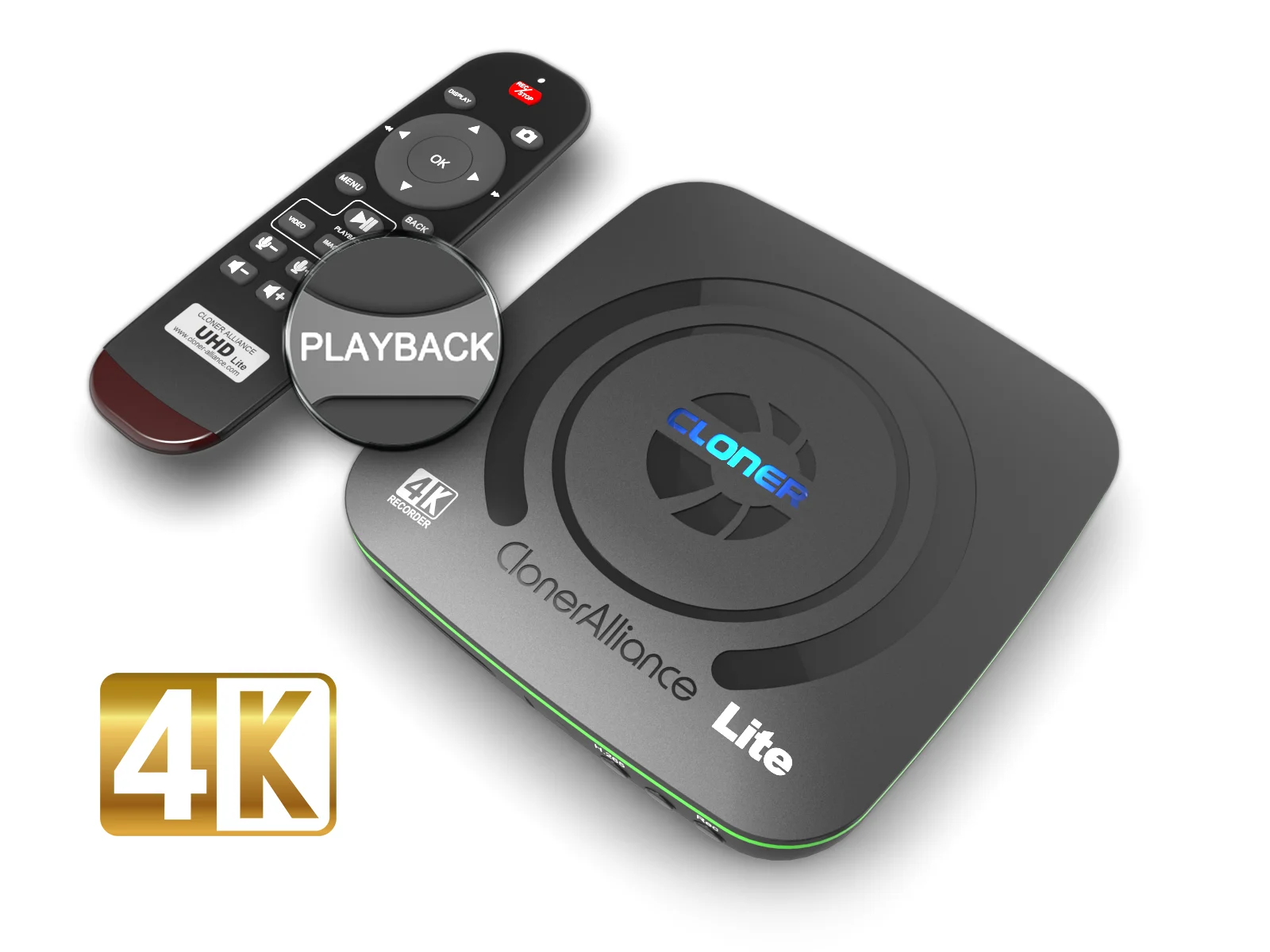 ClonerAlliance UHD Lite is the first genuine 4K standalone video recorder box on the market. You can easily record HDMI videos from set-top boxes, webcams, DSLRs, camcorders and game consoles to USB flash drive to external hard drive at up to 4K@30fps. It also supports 1080p@60fps and 720p video recording. Press one button on the recorder box or remote control, you can play back the recorded videos saved on the USB storage device on TV directly. H.265 encoding technology is adopted to save space and improve picture quality. It includes HDMI, Microphone, Line in and Line out port.