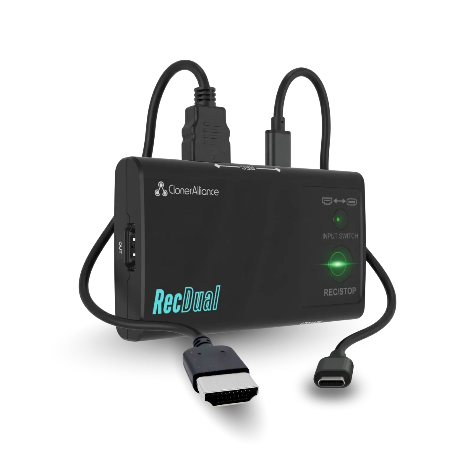 ClonerAlliance RecDual Dongle is a portable standalone video recorder that captures 1080p@60fps footage from both HDMI and USB Type-C (DP) sources. Record from smartphones, tablets, gaming consoles, and laptops without a PC. Features 4K@60fps passthrough, loop recording, and 66W fast charging while recording. Perfect for content creators on the go.