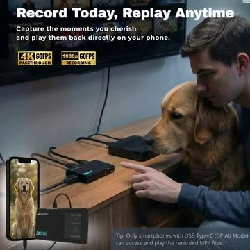 Switch between HDMI and USB-C DP sources with one button. Record from gaming consoles, smartphones, tablets, laptops, and cameras—all with a single device.